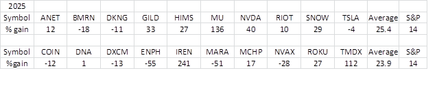 It is that time of the year when I need to replace stocks selected for 2025. Let us first see how those stocks fared. Needless to say, both lists outperformed the S&P 500 by a reasonable margin. However, that margin was not as significant as it was for the ten best for 2024. Here are the exact numbers: